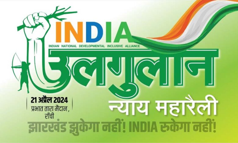 21 अप्रैल की उलगुलान महारैली में झारखंड की राजधानी रांची में राहुल गांधी, मल्लिकार्जुन खड़गे, फारूक अब्दुल्ला, अखिलेश सिंह, सुनीता केजरीवाल, संजय सिंह व पंजाब के मुख्यमंत्री भगवत मान, लालू प्रसाद, तेजस्वी यादव सहित 14 राष्ट्रीय स्तर के नेताओ का जुटान होगा। हालांकि इस उलगुलान महारैली में बंगाल की मुख्यमंत्री भाग नहीं लेंगी उनकी जगह उनके प्रतिनिधि के तौर पर राज्यसभा सांसद डेरेक ओब्रायन आएंगे।