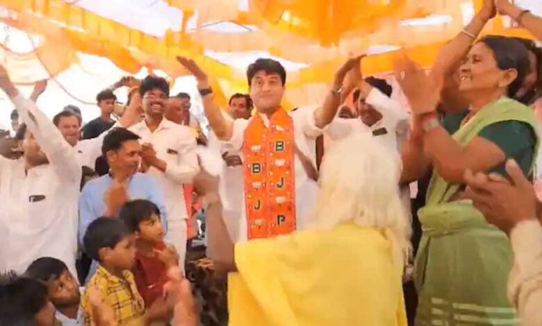 जनता के साथ गाने पर झूमते दिखे सिंधिया