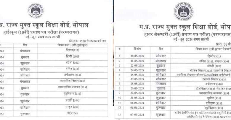 मध्य प्रदेश ओपेन स्कूल 10वीं/12वीं की परीक्षाओं का Time Table, इस लिंक करें डाउनलोड
