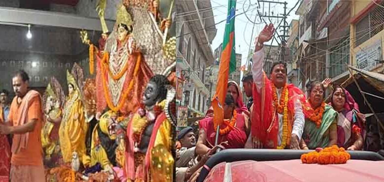 खुली गाड़ी से आरा से एनडीए प्रत्याशी आरके सिंह नामांकन करने रवाना, आरण्य देवी मंदिर में की पूजा