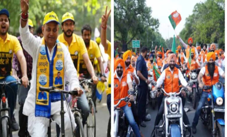 राजनीतिक दल चुनाव को देखते हुए चुनाव प्रचार में एड़ी-चोटी का जोर लगा रहे, AAP की साइकिल तो बीजेपी की मोटरसाइकिल