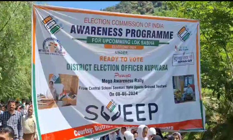 कश्मीर घाटी की तीन लोकसभा सीटों पर हो रहे चुनाव के मद्देनजर जहां उम्मीदवारों में उत्साह है, वहीं चुनाव आयोग ने भी कश्मीर घाटी के सभी मतदान केन्द्रों पर वोट प्रतिशत बढ़ाने के लिए कमर कस ली है। मतदाताओं को जागरूक करने के उद्देश्य से निर्वाचन आयोग ने भारत-पाकिस्तान बॉर्डर के पास देश के पहले मतदान केन्द्र कुपवाड़ा स्थित सीमारी में तिरंगा रैली निकाली, जिसमें स्थानीय लोगों ने बढ़ चढ़ कर भाग लिया।