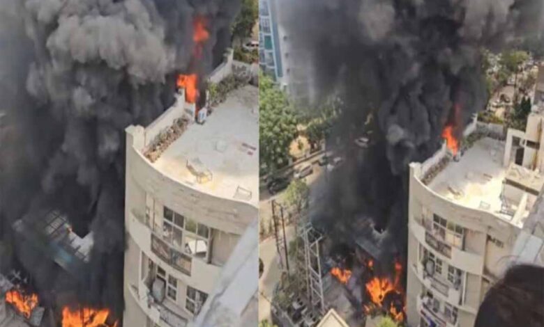 गाजियाबाद के इंदिरापुरम इलाके में भीषण आग, अहिंसा खंड-2 की अरिहंत हार्मनी सोसाइटी में लगी है