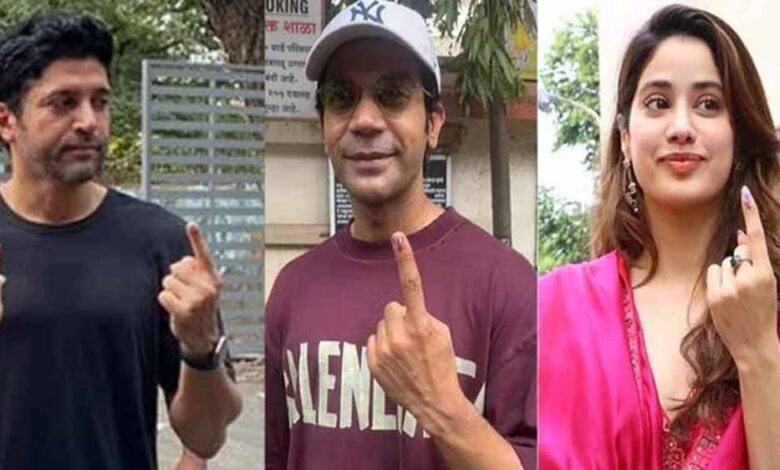 बॉलीवुड कलाकारों अक्षय कुमार, फरहान अख्तर, राजकुमार राव, जाह्नवी कपूर और कई अन्य फिल्मी हस्तियों ने मुंबई में लोकसभा चुनाव के लिए मतदान किया। महाराष्ट्र की 13 लोकसभा सीट के लिए मतदान सुबह सात बजे से जारी है। राज्य की इन 13 में से छह सीट मुं‍बई की हैं।