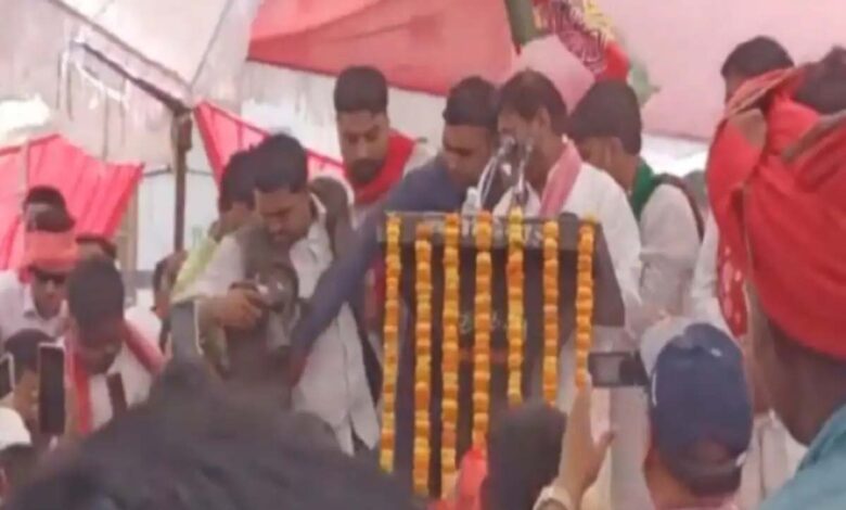 शिवपाल यादव की जनसभा के दौरान ज्यादा कार्यकर्ताओं के चढ़ने से टूटा मंच