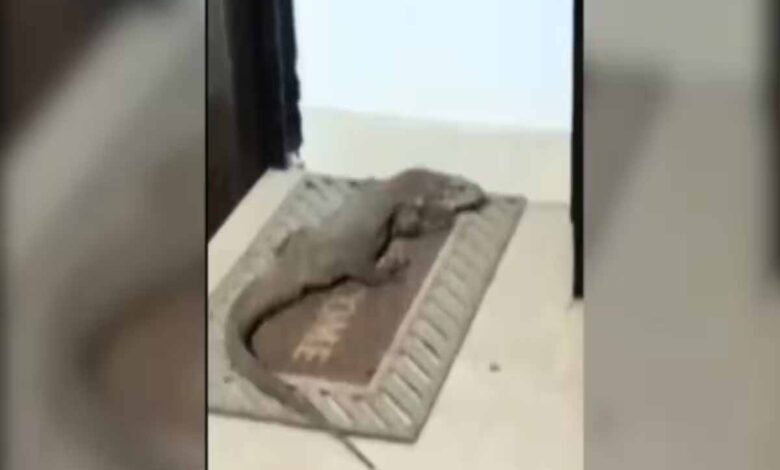 विशालकाय गोह एक बहुमंजिला इमारत में घुसा, वन विभाग ने किया रेस्क्यू