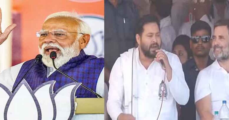 तेजस्वी यादव ने पीएम मोदी पर तंज कसते हुए कहा कि पीएम मोदी का भाषण अब किसी को नहीं सुनना चाहिए। वह मंदिर, मस्जिद, मटन, मछली और मुजरे की बात करते हैं। उनका यही मुद्दा है। वह बिहार आकर लालू जी को, तेजस्वी को, राहुल जी को गाली देते हैं। प्रधानमंत्री पद का उन्हें गरिमा रखना था। नरेंद्र मोदी को तेजस्वी ने विश्व का सबसे झूठा प्रधानमंत्री तक कह दिया और कहा कि यह गोबर को हलवा बना देते हैं।