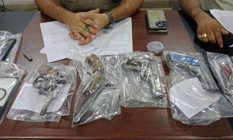 तलाशी में मिली, पिस्टल, रिवाल्वर