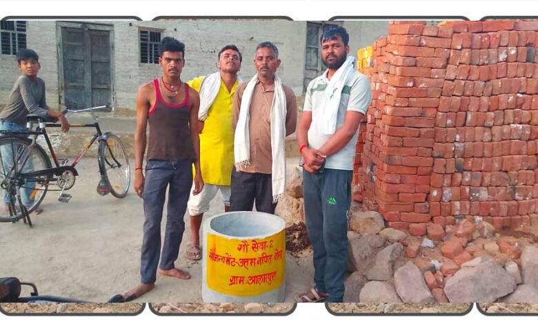 समाजसेवी उत्तम नापित के द्वारा आलमपुरा में जगह-जगह रखवाई गई गायों को पानी के लिए होदी