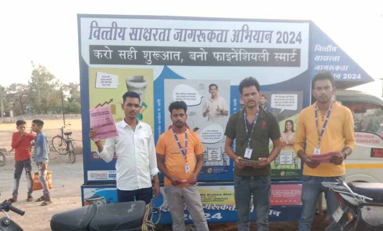 मनीवाइज वित्तीय साक्षरता परियोजना अंतर्गत प्रचार वाहन के मध्यम से अग्रणी जिला प्रबंधक महोदय श्री रविशंकर सिन्हा जी एवम् बैंक ऑफ इंडिया के ब्रांच मेनेजर अरुण मिश्रा के नेतृत्व मे एवं अपराजिता महिला संघ संस्था के द्वारा बैंक की विभिन्न योजनाओं प्रधानमंत्री जीवन ज्योती बीमा योजना, प्रधानमंत्री सुरक्षा बीमा योजना, अटल पेंशन योजना, सुकन्या समृद्धी योजना, सायबर क्राईम, चिटफंड कंपनी, बैंकिंग लोकपाल और एटीएम कार्ड का उपयोग और सावधानी आदि के वारे मे जागरूक पर किया जा रहा है I