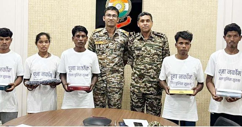 17 लाख के इनामी पांच नक्सलियों ने अपने संगठन को छोड़कर मुख्यधारा में जुडने की इच्छा जताते हुए मंगलवार को आत्मसमर्पण किया, सभी नक्सली अलग – अलग घटनाओं में शामिल थे जिसमें टोण्डामरका मुठभेड़, सलातोंग मुठभेड़ और साकलेर मुठभेड़ प्रमुख रूप हैं। आत्मसमर्पित नक्सली नक्सली संगठन के पीएलजीए बटालियन नंबर 1 और दक्षिण बस्तर डिवीजन कमेटी में अलग- अलग पदों पर लंबे समय से काम कर रहे थे।