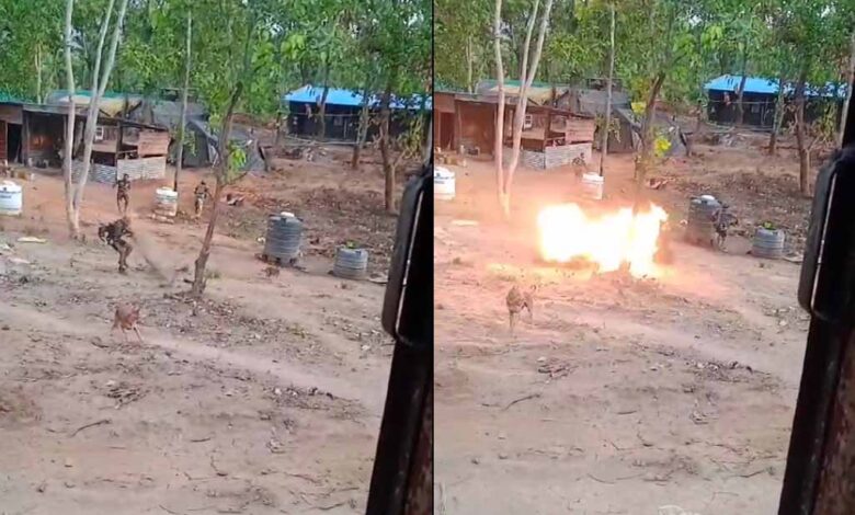 नक्सलियों ने अबूझमाड़ के इरकभट्टी पुलिस कैंप में हमला किया है. पुलिस कैंप में नक्सलियों ने लगातार बीजीएल रॉकेट लांचर दागे. इस हमले का वीडियो सोशल मीडिया पर वायरल हो रहा है. वीडियो में देखा जा सकता है कि बीजीएल रॉकेट जवानों के पास गिरता है. लेकिन उसके फटने से पहले जवान भाग जाते हैं और उसके बाद जोरदार धमाका होता है.