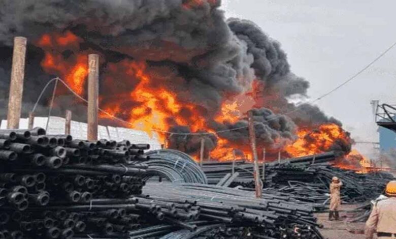 पीथमपुर इंडस्ट्रियल एरिया में भीषण आग, दूर से दिख रहीं आग की लपटें