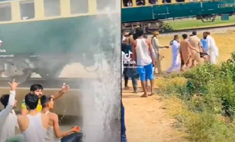 दौड़ती ट्रेन पर पानी फेंक रहे थे लड़के , ब्रेक लगा तो हुई कुटाई, बाइक भी उठा ले गए लोग