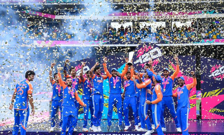 टी20 वर्ल्ड कप 2024 का खिताबी मुकाबला भारत ने 7 रनों से जीत 11 साल से चला आ रहा आईसीसी ट्रॉफी का सूखा खत्म किया। भारत ने आखिरी बार चैंपियंस ट्रॉफी 2013 के रूप में आखिरी आईसीसी ट्रॉफी जीती थी, वहीं 13 साल बाद भारत कोई वर्ल्ड कप और 17 के लंबे इंतजार के बाद टी20 वर्ल्ड कप जीतने में कामयाब रहा है। भारतीय टीम के लिए यह टूर्नामेंट काफी शानदार रहा है। टीम इंडिया बिना कोई मैच हारे चैंपियन बनी है। टी20 वर्ल्ड कप के इतिहास में ऐसा पहली बार हुआ है जब कोई टीम अपराजित रहते हुए ट्रॉफी उठाने में कामयाब रही। रोहित शर्मा एंड कंपनी को इस ताबड़तोड़ परफॉर्मेंस की कीमत फाइनल के बाद प्राइज मनी के रूप में मिली। वहीं खिताबी मुकाबला हारने वाली टीम साउथ अफ्रीका भी इस दौरान करोड़ों रुपए कमा गई। आईए भारतीय रुपयों में जानते हैं टी20 वर्ल्ड कप की प्राइजमनी के बारे में-