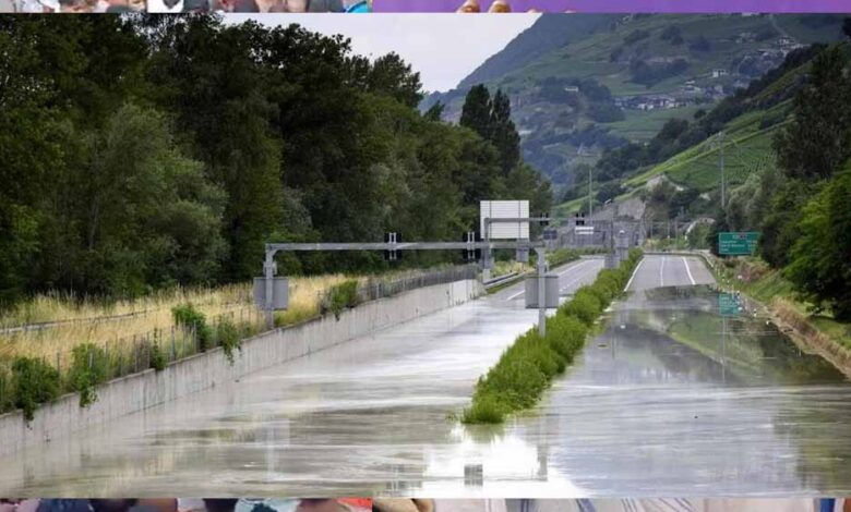 स्विट्जरलैंड में रेलवे पटरी डूबी