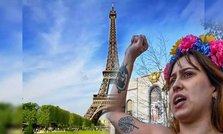 फ्रांस में दक्षिणपंथी नेशनल रैली की चुनावों में बढ़त का विरोध, फेमिनिस्टों ने किया टॉपलेस होकर प्रदर्शन