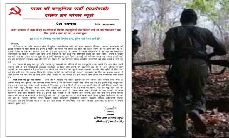 छत्तीसगढ़-सुकमा ब्लास्ट में ‘दो नहीं पांच जवान हुए थे शहीद’, नक्सलियों ने जारी किया प्रेस नोट