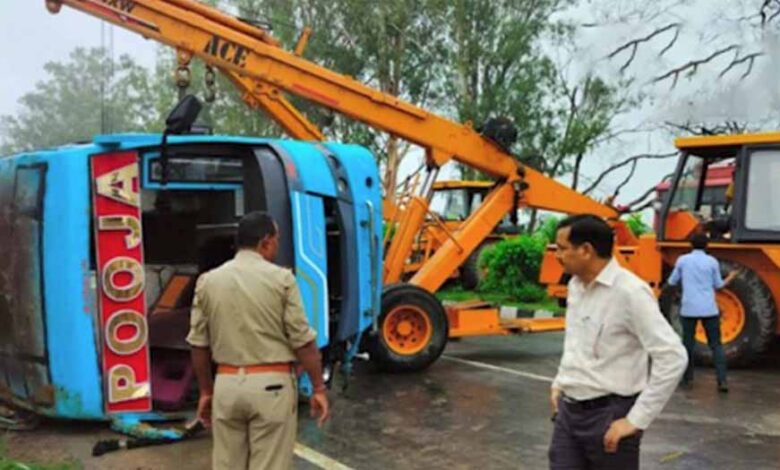 दिल्ली-देहरादून नेशनल हाईवे 58 पर दो बसें अनियंत्रित होकर सड़क किनारे खाई में पलट गई, चालक की मौके पर मौत