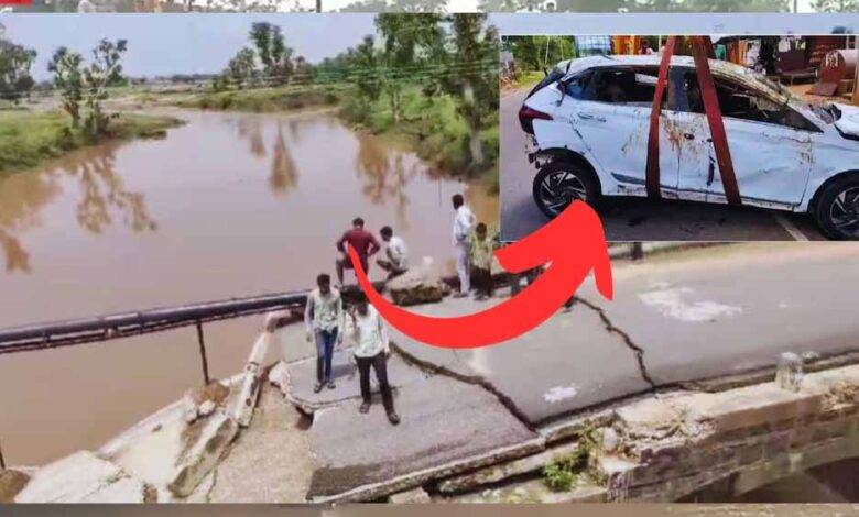 पिछोर में तेज बारिश में कार पुलिया पर पानी के तेज बहाव में बह गई, कार में शिवम गुप्ता और राकेश सिंह रोशन सवार थे