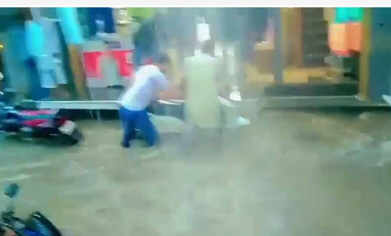 सीहोर जिले के इछावर में मूसलाधार बारिश, मार्केट में पानी के तेज बहाव में वाहन तिनके की तरह बहने लगा