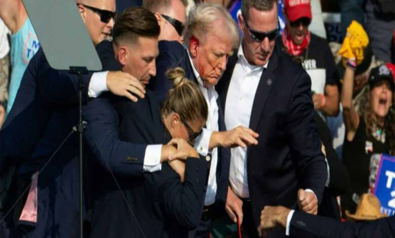 अमेरिका के पूर्व राष्ट्रपति ट्रंप के ऊपर एक रैली के दौरान जानलेवा हमला हुआ, जिसमें दूर एक बिल्डिंग पर बैठे शख्स ने राइफल के जरिए ट्रंप के ऊपर गोली चलाई। गोली सीधे जाकर ट्रंप के कान को छूती हुई निकली, जिसके बाद रैली में अफरा तफरी मच गई। ट्रंप ने मंच पर झुककर अपने आप को बचाया तब तक उनके सुरक्षाकर्मी उनकी सुरक्षा के लिए उनके पास आ गए। ट्रंप को ले जाते समय उनके कान के पास से खून निकलता हुआ साफ दिखाई दे रहा था लेकिन ट्रंप के उत्साह में इससे कोई फर्क पड़ता दिखाई नहीं दिया, उन्होंने हाथ हवा में लहराते हुए अपने आप को मजबूत दिखाया।