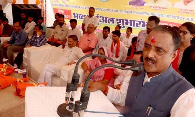 नवीन एवं नवकरणीय ऊर्जा मंत्री श्री राकेश शुक्ला ने छात्र-छात्राओं को संबोधित कर कहा कि आज बड़ा ही सौभाग्य का दिवस है। अब मध्यप्रदेश के 55 जिलों में कॉलेजों ने सभी क्राइटेरिया पूरे कर प्रधानमंत्री कॉलेज ऑफ एक्सीलेंस का दर्जा प्राप्त किया है। जिसमें भिण्ड जिले का एमजेएस महाविद्यालय भी शामिल है जिसके आज हम सभी साक्षी बन रहे हैं। नवीन एवं नवकरणीय ऊर्जा मंत्री श्री शुक्ला ने कहा कि विद्यार्थियों तक उत्कृष्ट और गुणवत्तापूर्ण शिक्षा पहुंचाने के मध्यप्रदेश सरकार द्वारा हर संभव प्रयास किया जा रहा है। शिक्षा के क्षेत्र में विद्यार्थियों के उत्तम भविष्य के लिए कोई कसर नहीं छोड़ी जायेगी।