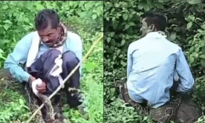 झाड़ियों में बैठकर शौच कर रहे युवक को अजगर ने जकड़ा, ग्रामीणों ने लाठी से हमला कर युवक को छुडाया