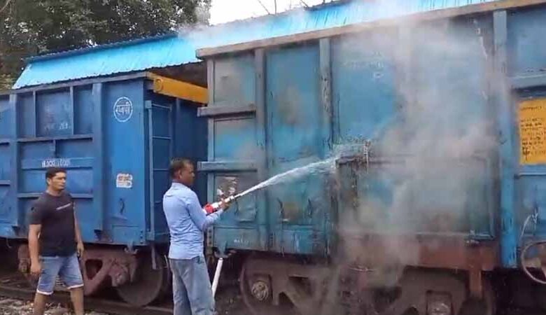 बरबतपुर रेलवे स्टेशन पर एक मालगाड़ी के डिब्बे में लगी आग