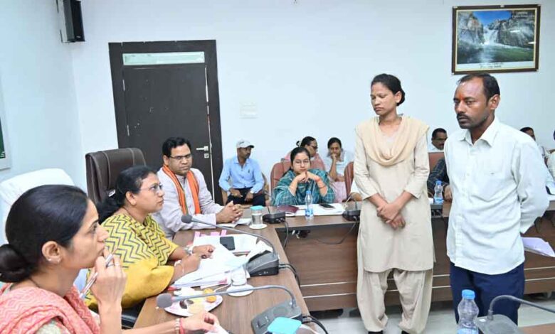 साथ ही नियम प्रक्रिया के तहत योजनाओं का लाभ दिलाने के निर्देश दिए। प्राप्त आवेदनों में पट्टे की भूमि पर जबरन कब्जा करने, स्वामित्व की भूमि में लगे सींमेंट का पोल उखाड़ कर फेकने तथा जान से मारने की धमकी देने, भूमि से संबंधि नकल नहीं देने, सेवा में पुनः रखने, प्रधानमंत्री समृद्धि योजना की राशि दिलाने, जमीन फर्जी रूप से अपने नाम करने, पट्टा दिलाने, राजस्व अभिलेख में कूट रचना करने, नक्शा बटांकन, सड़क मरम्मत, भूमि अधिग्रहण का मुआवजा दिलाने आदि आवेदन शामिल है। जनदर्शन में अपर कलेक्टर नम्रता आनंद डोंगरे, परियोजना निदेशक डीआरडीए केपी तेंदुलकर सहित सभी जिला अधिकारी उपस्थित थे।