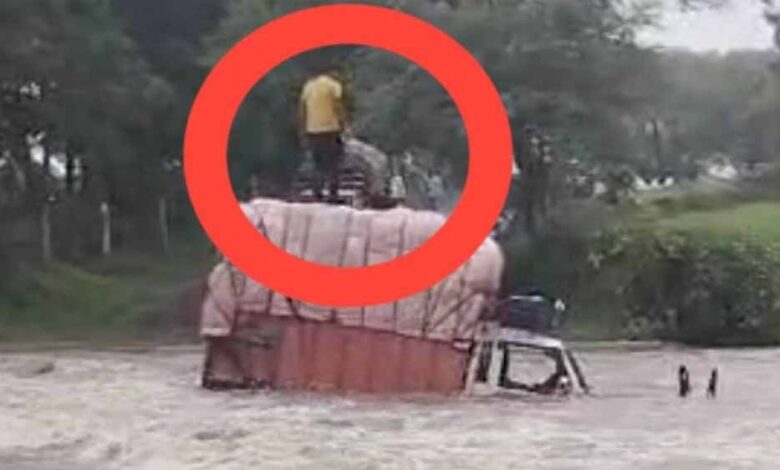 बीच पुलिया पर वाहन फंस गया था। पानी लगातार बढ़ रहा था। बहाव अधिक होने के कारण चालक महेंद्र अपनी जान बचाने के लिए वाहन के ऊपर चढ़ गया था।