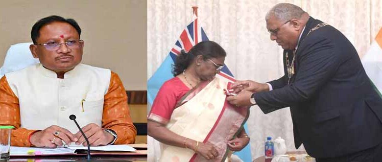 राष्ट्रपति द्रौपदी मुर्मु को फिजी के सर्वोच्च नागरिक सम्मान दिए जाने पर सीएम विष्णु देव साय ने बधाई और शुभकामनाएं दी
