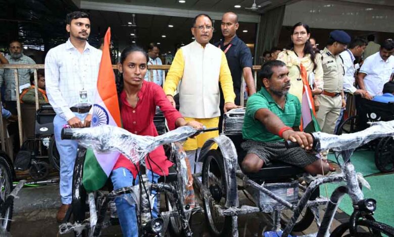 छत्तीसगढ़-मुख्यमंत्री विष्णुदेव साय ने तीन दिव्यांगों को दीं ई-ट्राई साइकिल, जनदर्शन कार्यक्रम में किया वितरण