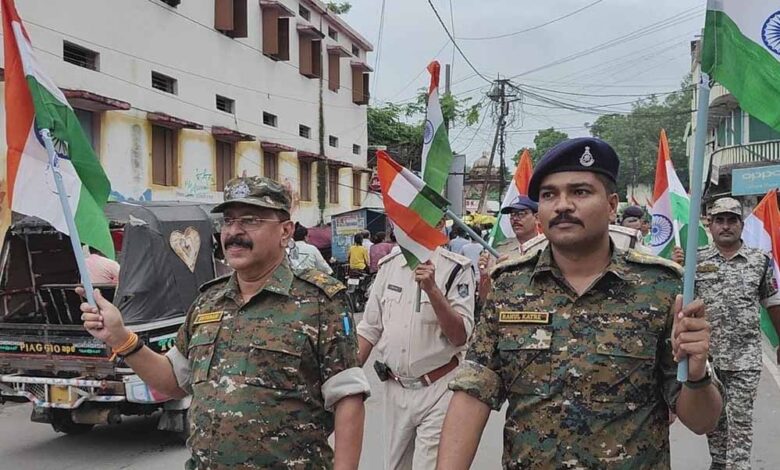 उक्त तिरंगा रैली में रक्षित निरीक्षक श्री विशाल मालवीय पुलिस अधिकारी/ कर्मचारी, स्कूली छात्र-छात्राएं, खेल विभाग के कर्मचारी शामिल हुए।