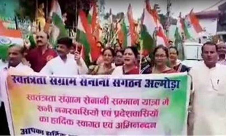 अल्मोड़ा में स्वतंत्रता सेनानी एवं उत्तराधिकारी संगठन ने अगस्त क्रांति की वर्षगांठ पर स्वतंत्रता सेनानी सम्मान यात्रा निकाली