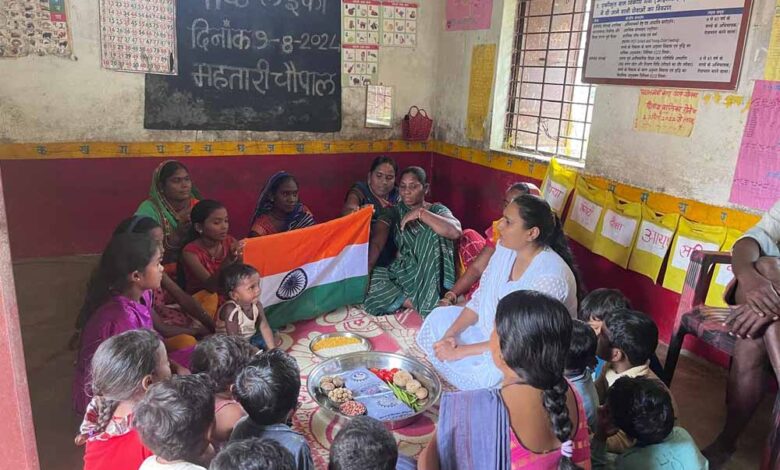 पोट्ठ लइका पहल कार्यक्रम अंतर्गत कुपोषण से आजादी पाने के लिए तिरंगे भोजन का महत्व समझाया गया