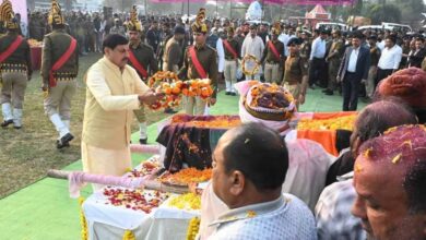 नक्सली मुठभेड़ में शहीद आशीष शर्मा को दी गई अंतिम सलामी, कैबिनेट मंत्री प्रहलाद पटेल ने अर्पित की श्रद्धांजलि