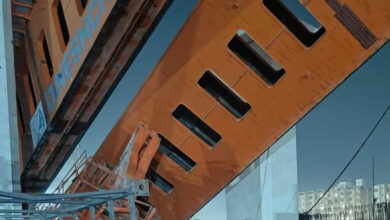 मुंबई देर रात अहमदाबाद के वटवा के पास मुंबई-अहमदाबाद बुलेट ट्रेन परियोजना के निर्माण के दौरान एक सेगमेंटल लॉन्चिंग गांत्री…