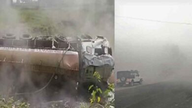 छत्तीसगढ़-पेंड्रा में एसिड से भरा टैंकर पलटा, जहरीला धुआं फैला, चालक फरार