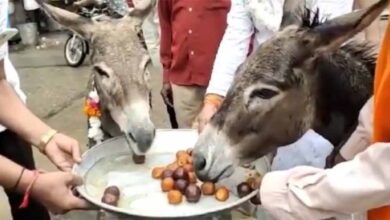 अच्छी बारिश होने पर निभाया वादा, मंदसौर में गधों को खिलाए गुलाब जामुन