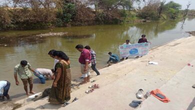 नर्मदा नदी से लगे ग्रामों में नदी के आसपास स्वच्छता के लिये सामूहिक श्रमदान