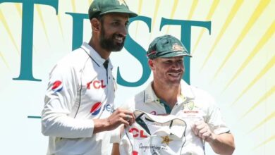 डेविड वॉर्नर को पाकिस्तानी कप्तान शान मसूद ने हस्ताक्षरित जर्सी भेंट की