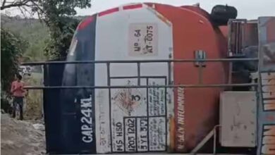 सिंगरौली में डीजल से भरा टैंकर पलटा और मच गई लूट, बाल्टी-डिब्बों में तेल भरने के लिए एक दूसरे पर चढ़े लोग