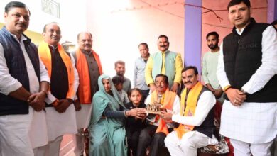 भाजपा प्रदेश अध्यक्ष विष्णुदत्त शर्मा ने कार सेवक के निवास पहुंचकर किया सम्मानित